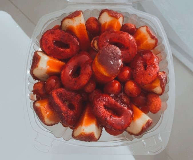 Paleta de hielo sabor fresa con cobertura de chamoy